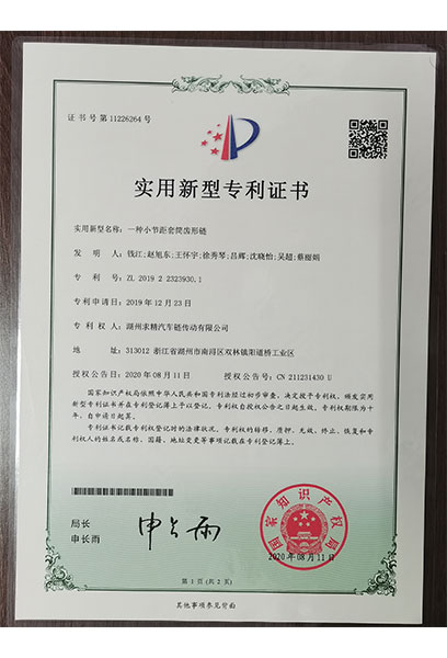 The company has passed the IATF16949 quality system certification and is a national key high-tech enterprise, a key backbone enterprise in Huzhou City, and a "double high" enterprise in Huzhou City.